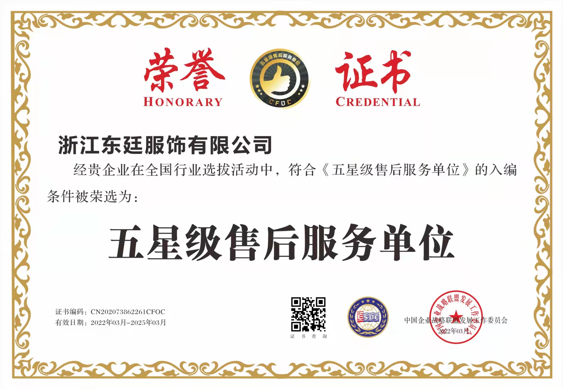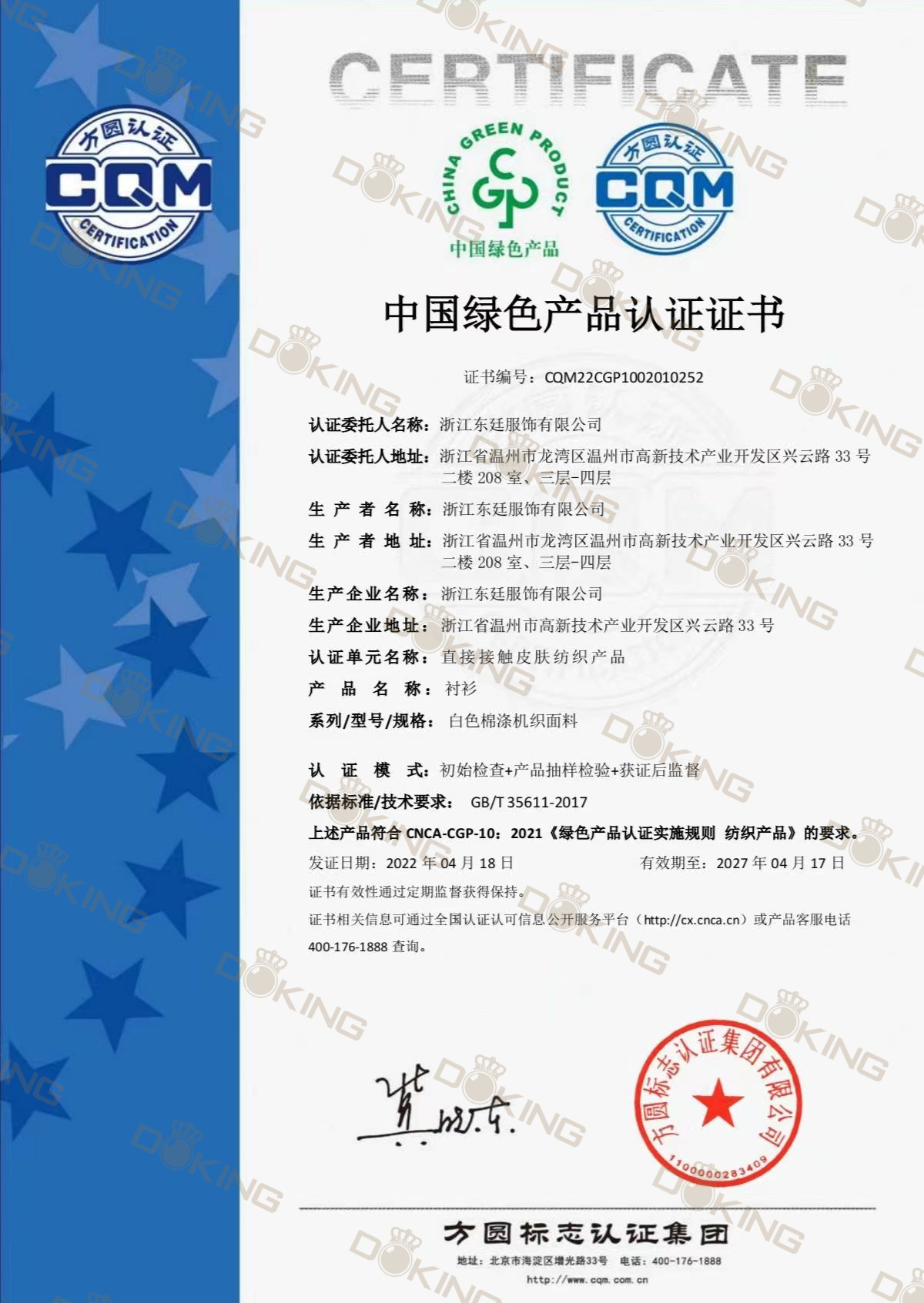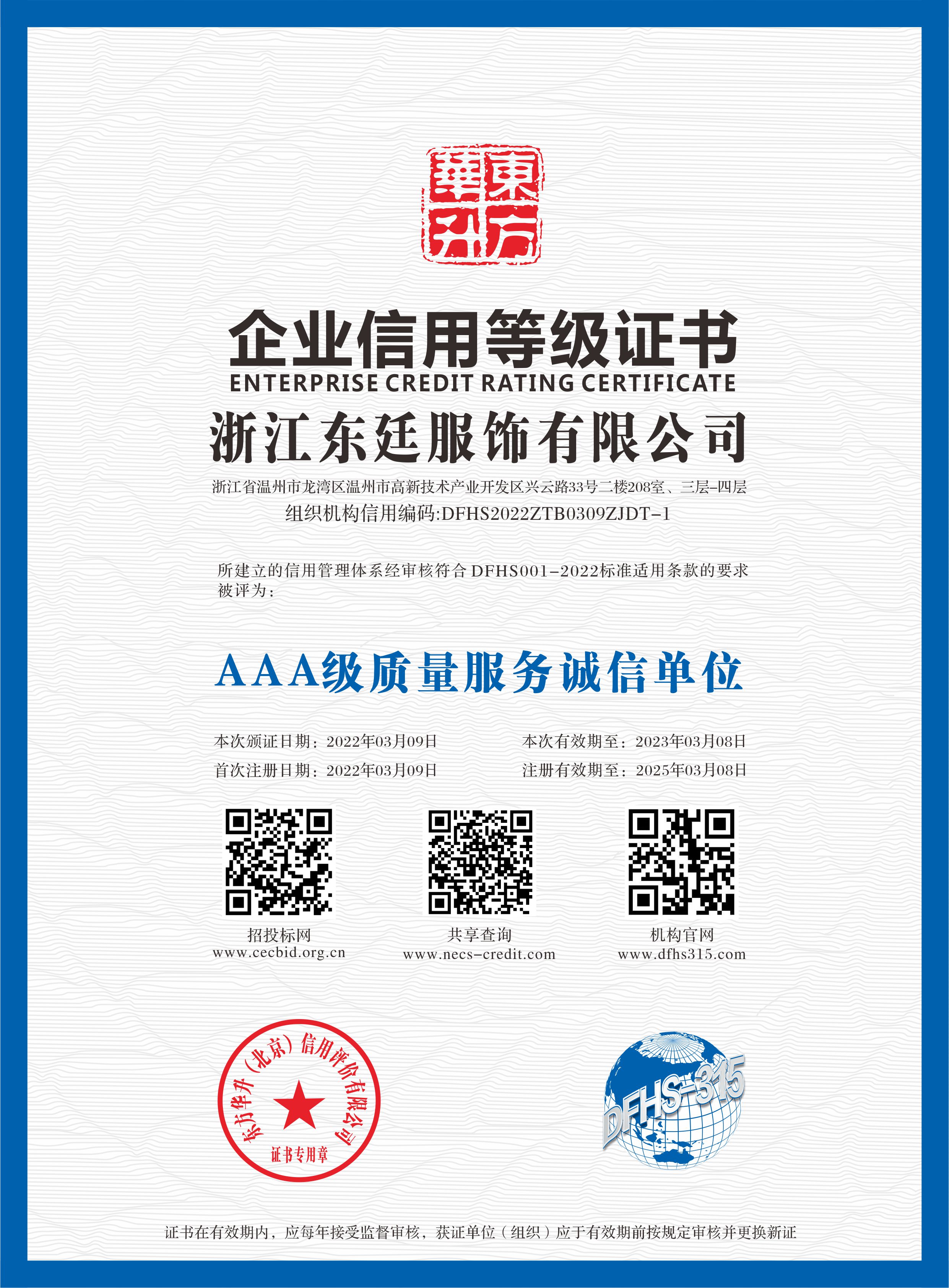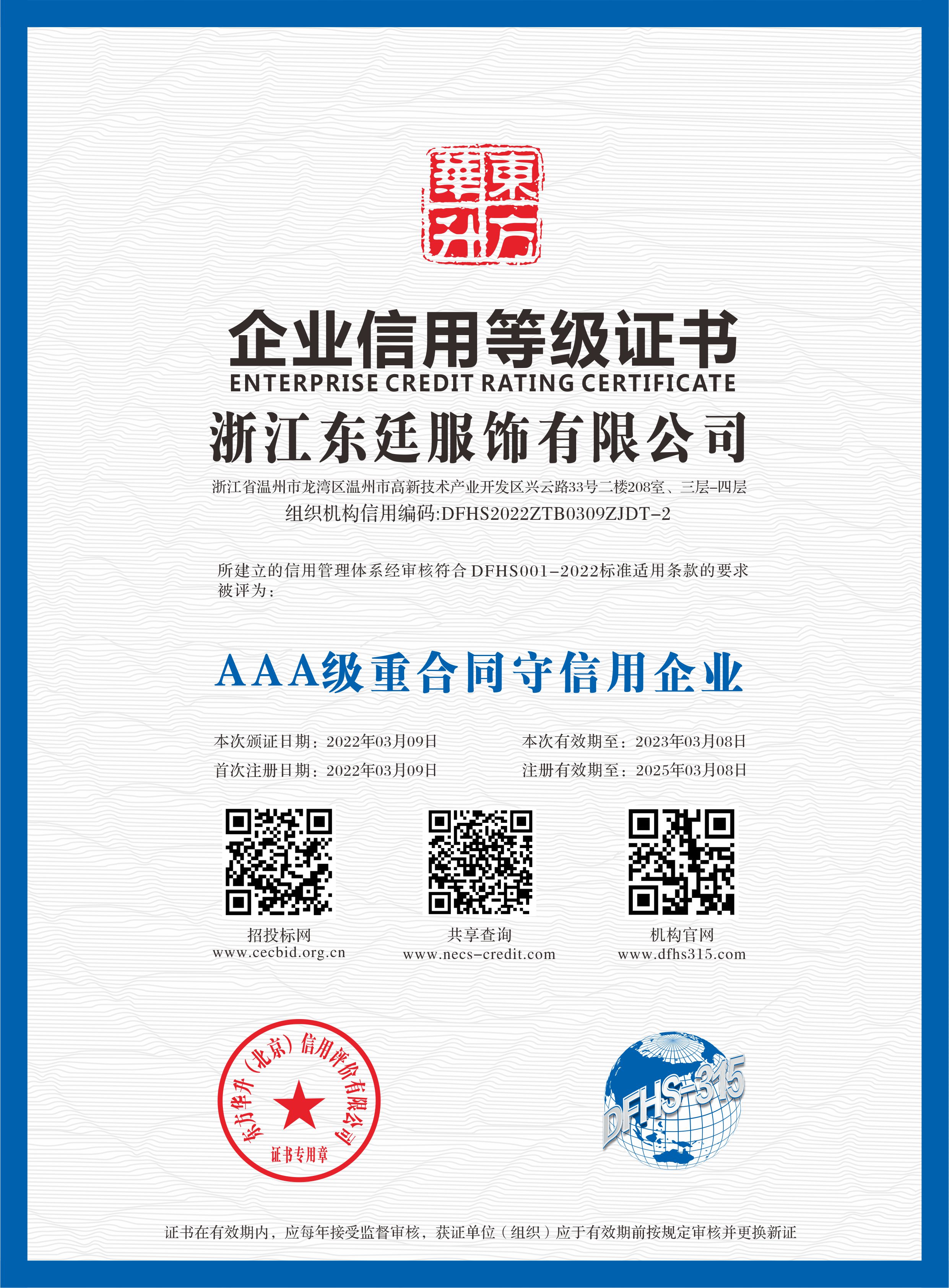 公司通過了ISO9001質(zhì)量管理體系認(rèn)證、ISO14001環(huán)境管理體系認(rèn)證、OHSAS18001職業(yè)健康安全認(rèn)證,國家綠色產(chǎn)品認(rèn)證。公司目前擁有15個(gè)發(fā)明專利和實(shí)用新型專利,2020年被評為“國家高新技術(shù)企業(yè)”、“浙江制造品字標(biāo)認(rèn)證企業(yè)”,“國家綠色產(chǎn)品認(rèn)證”還先后被評為“中國馳名商標(biāo)”、“中國名牌產(chǎn)品”、“中國職業(yè)裝十大品牌”、“AAA級信用企業(yè)”、“AAA質(zhì)量服務(wù)誠信企業(yè)”、“AAA級重合同守信用企業(yè)”、“資信等級AAA企業(yè)”、“國家3.15誠信企業(yè)”、“浙江省科技型中小企業(yè)”、“浙江省著名品牌”、“五星級售后服務(wù)單位”、““安全生產(chǎn)標(biāo)準(zhǔn)化一級企業(yè)”、“國家權(quán)威檢測合格放心產(chǎn)品”等榮譽(yù)。公司產(chǎn)品覆蓋高端職業(yè)裝團(tuán)購定制、高級個(gè)人定制等業(yè)務(wù),高品質(zhì)的產(chǎn)品和個(gè)性化的服務(wù)倍受客戶的青睞。